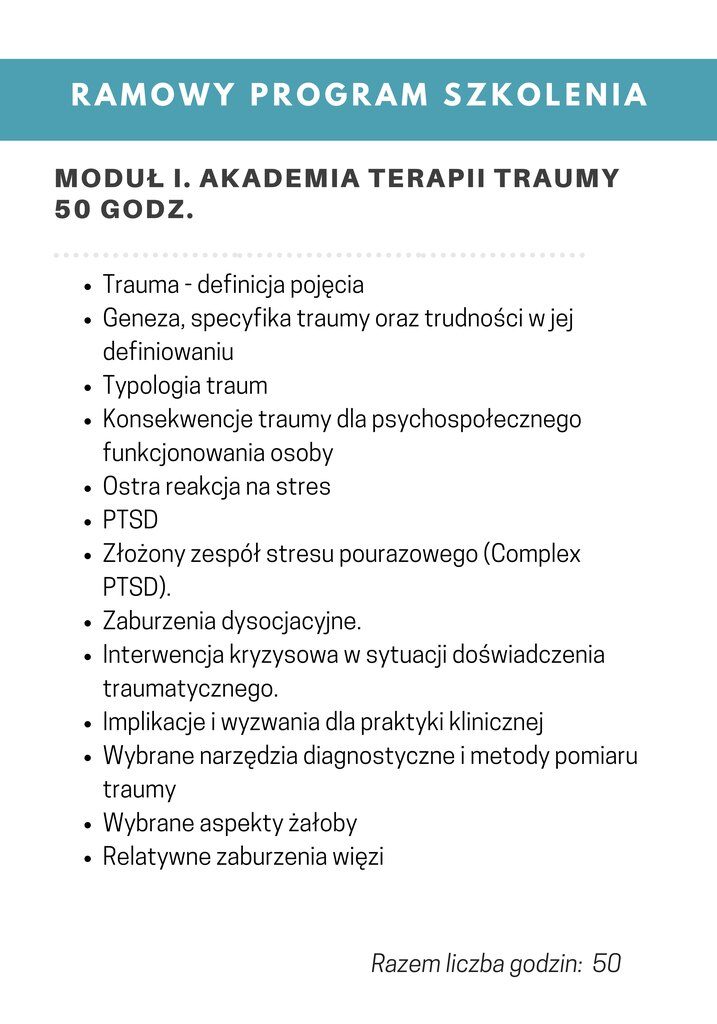 - Interwencja kryzysowa w sytuacji doświadczenia traumatycznego.