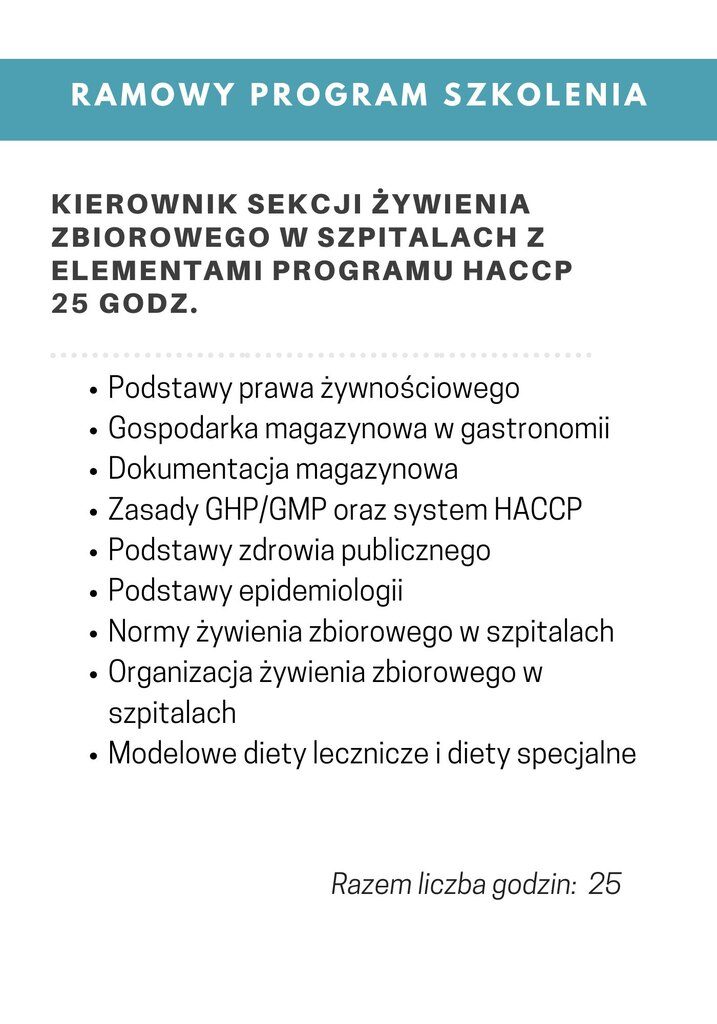 Kierownik sekcji żywienia zbiorowego w szpitalach kurs online